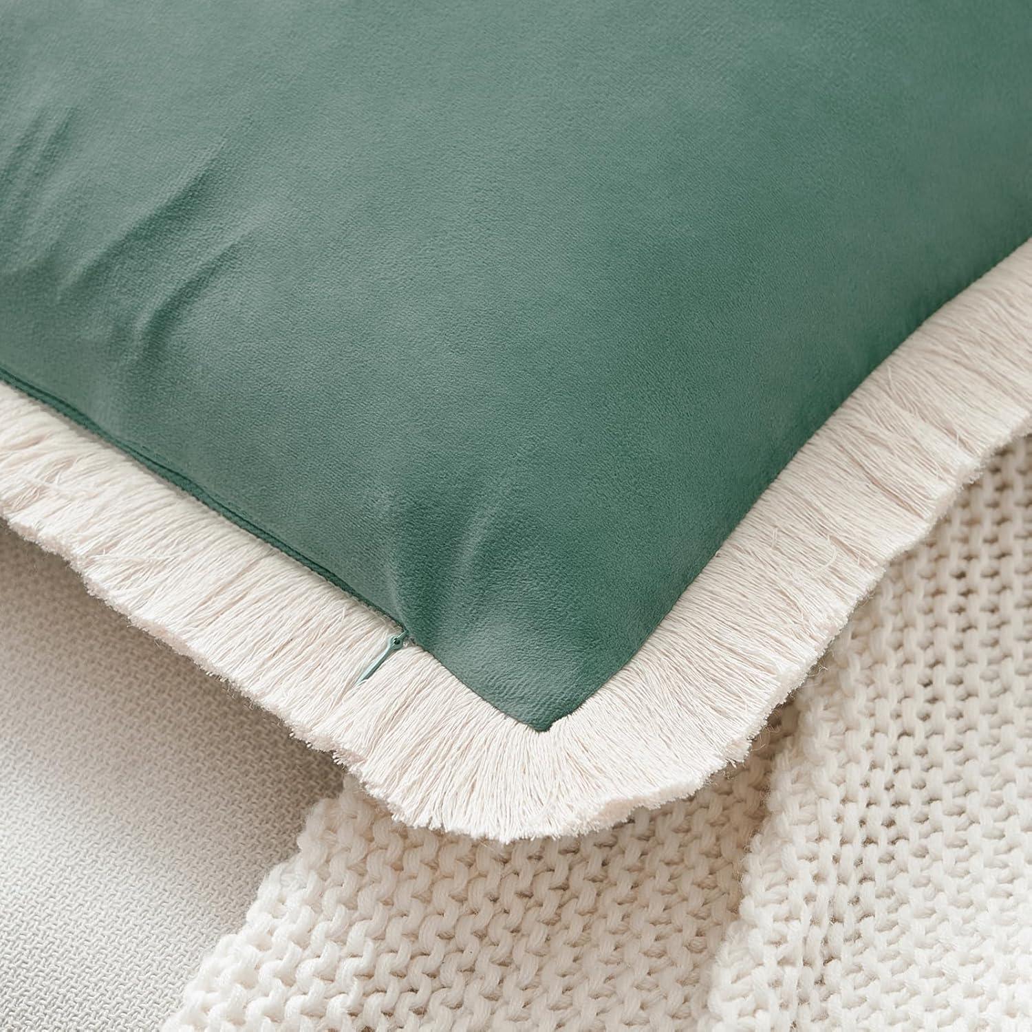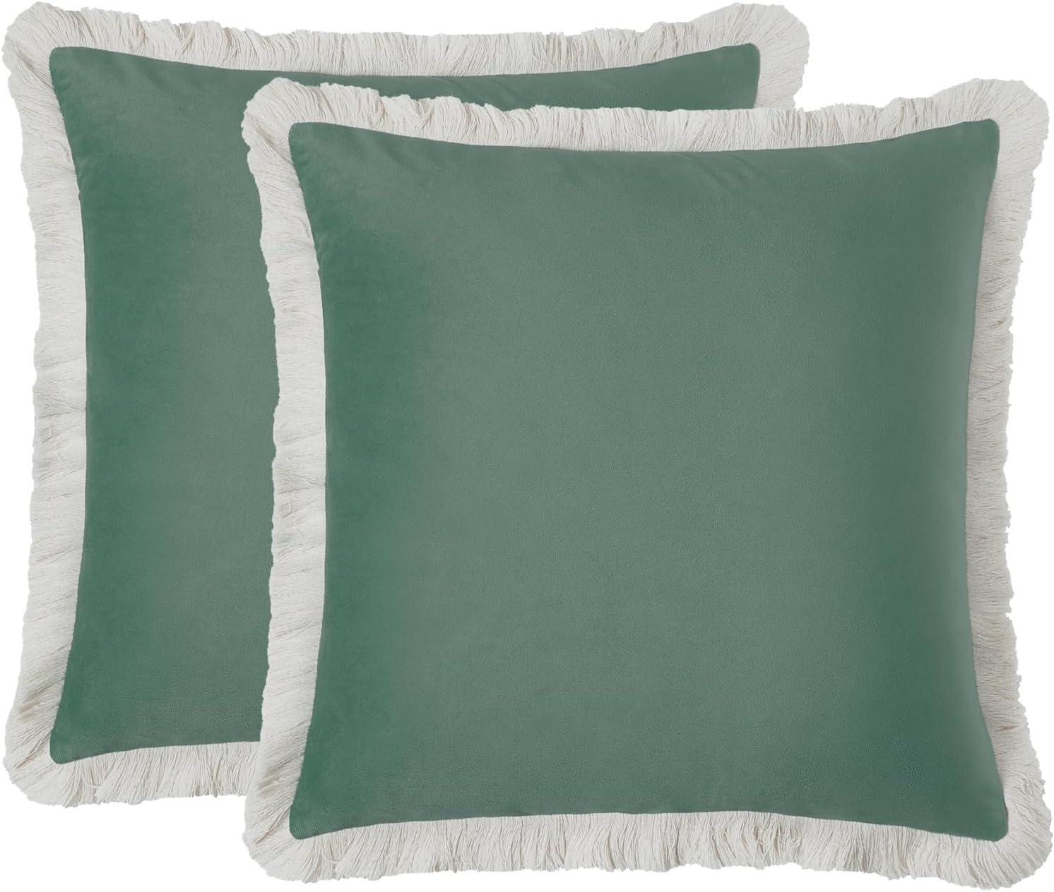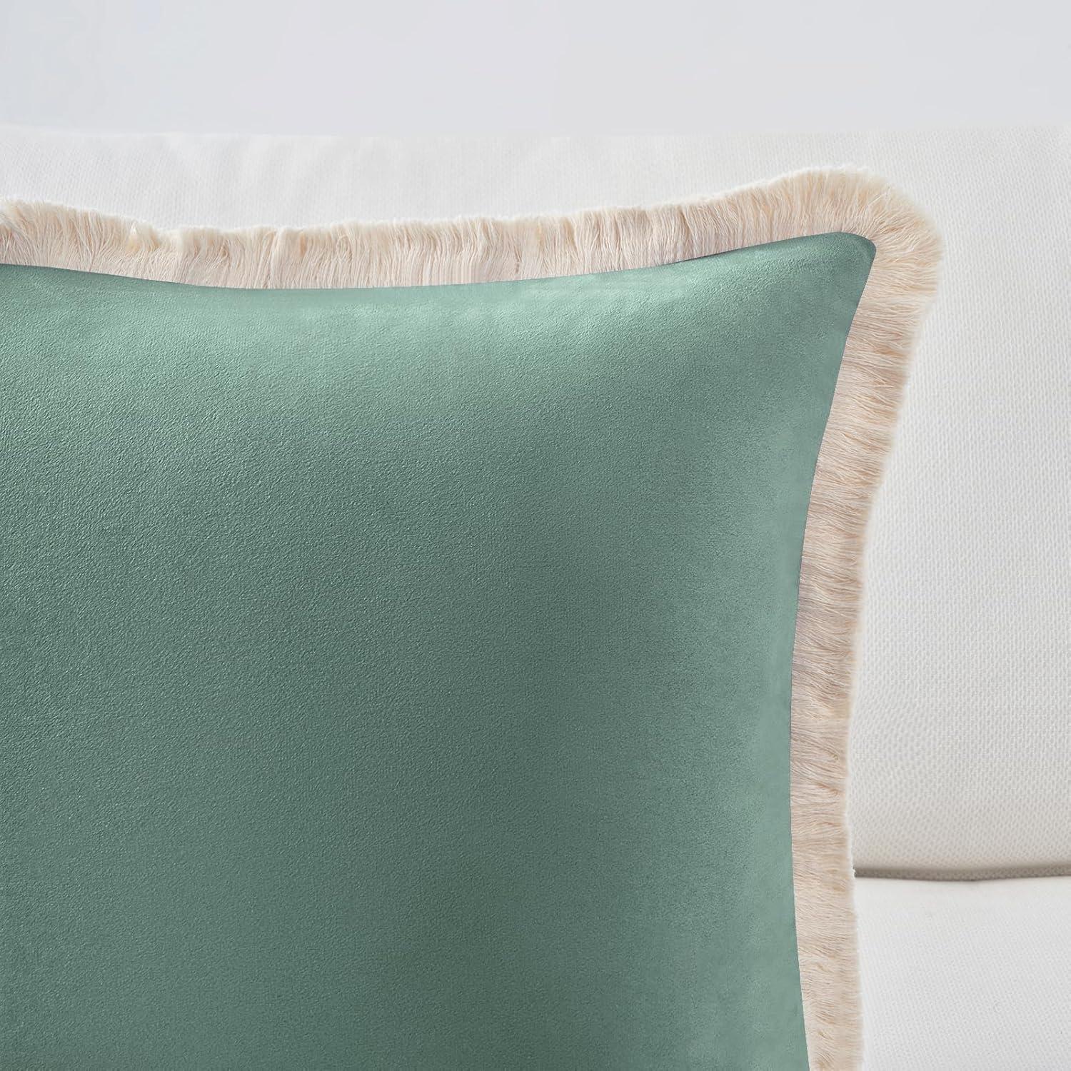 MONDAY MOOSE Decorative Throw Pillow Covers Cushion Cases, Set of 2 Soft Velvet Modern Fringe Tassel Designs, Mix and Match for Home Decor, Pillow Inserts Not Included (Beige, 16x16 inch)(Sea Green)