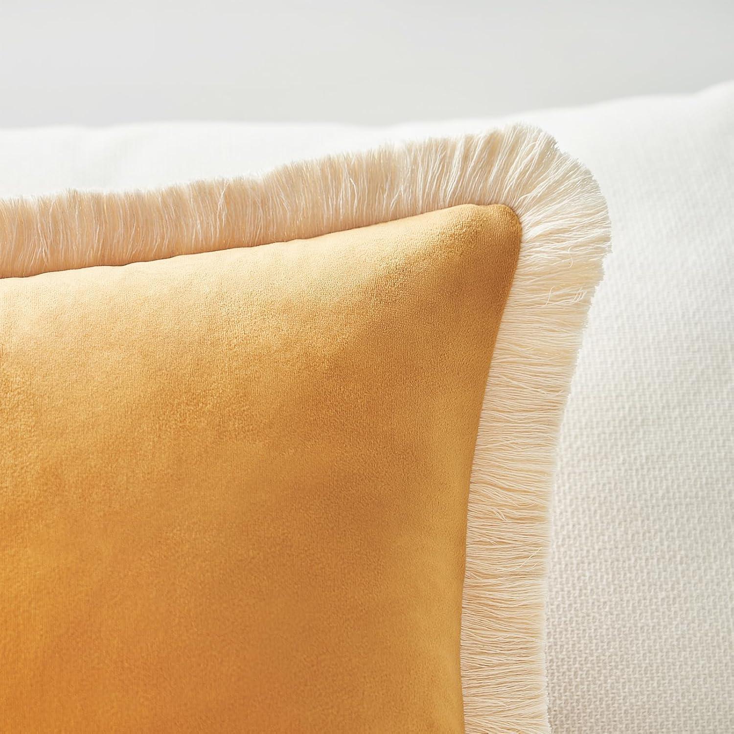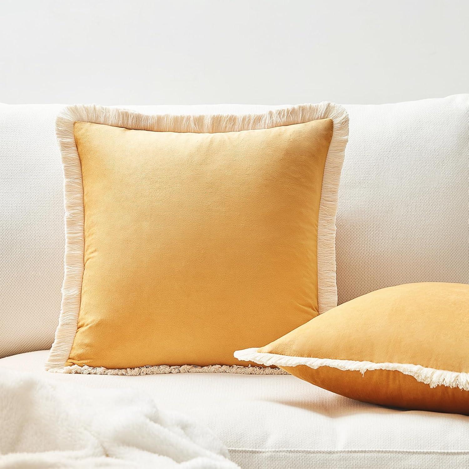 MONDAY MOOSE Decorative Throw Pillow Covers Cushion Cases, Set of 2 Soft Velvet Modern Fringe Tassel Designs, Mix and Match for Home Decor, Pillow Inserts Not Included (Beige, 16x16 inch)(Yellow)