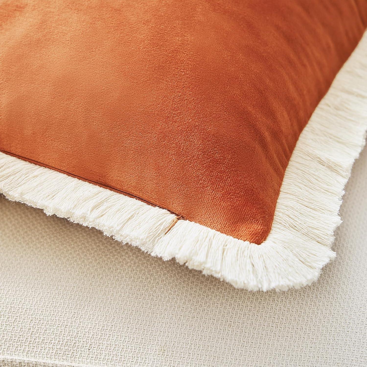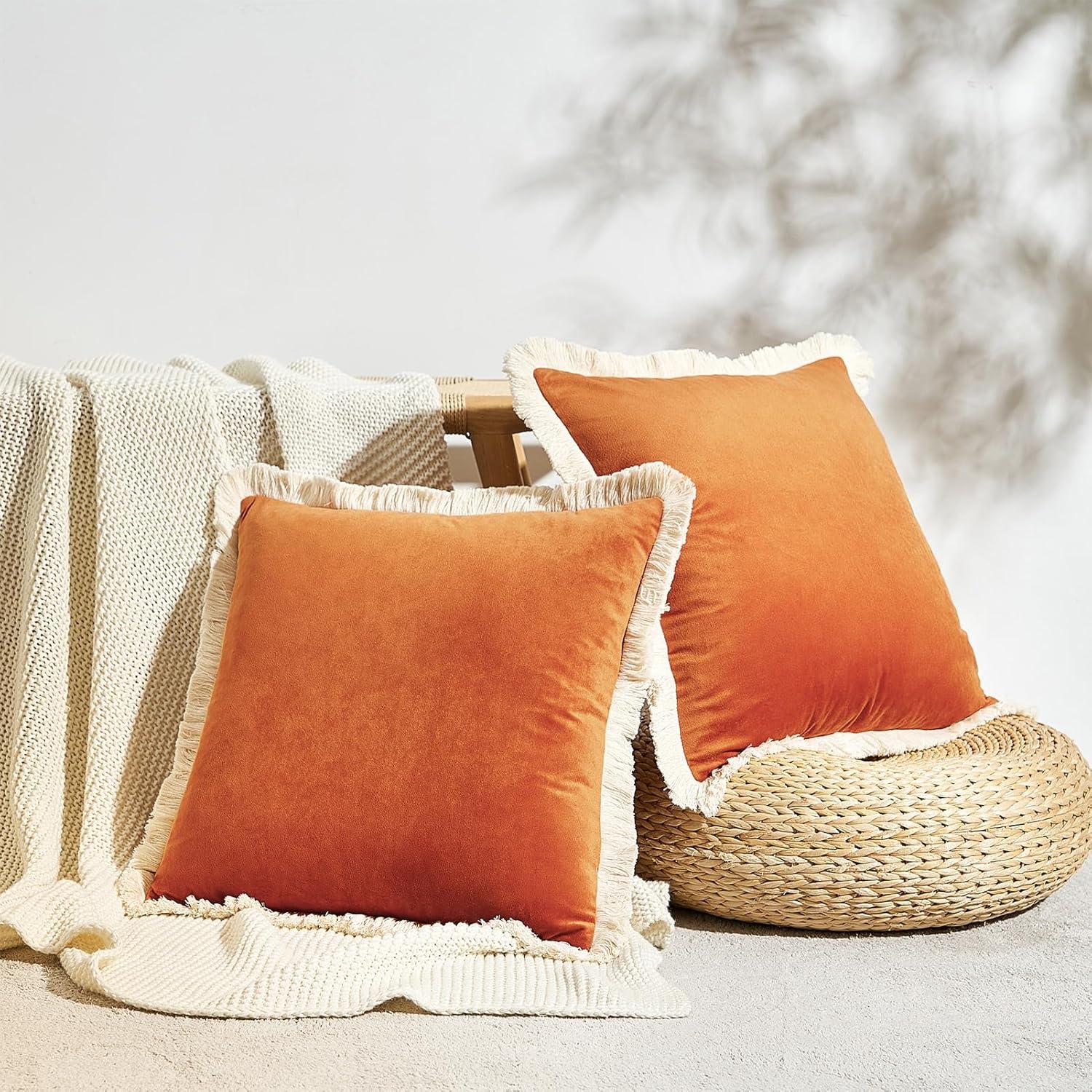 imageMONDAY MOOSE Decorative Throw Pillow Covers Cushion Cases Set of 2 Soft Velvet Modern Fringe Tassel Designs Mix and Match for Home Decor Pillow Inserts Not Included Powder Blue 18x18 inchOrange