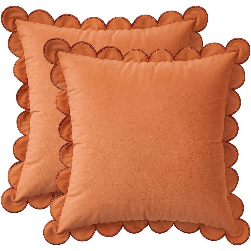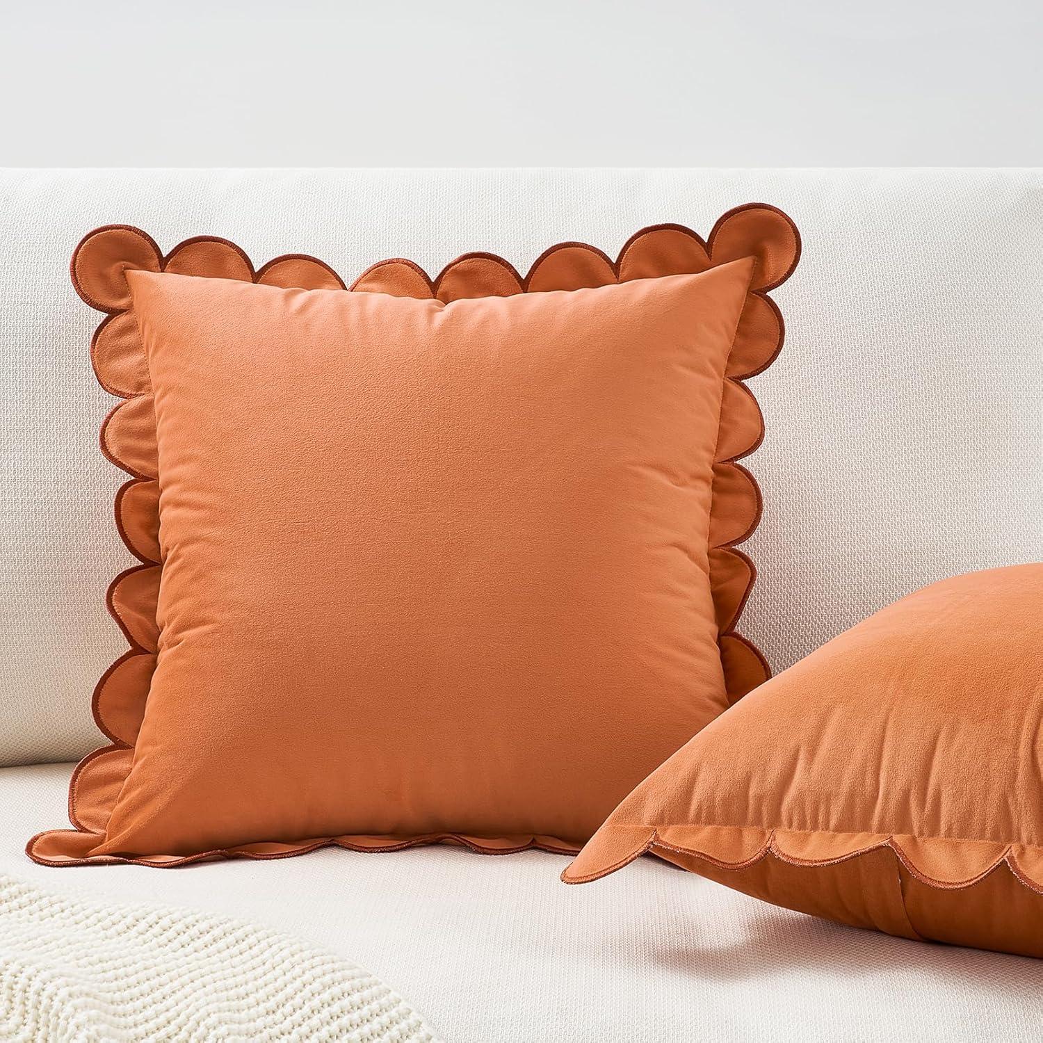 imageMONDAY MOOSE Decorative Throw Pillow Covers Cushion Cases Set of 2 Soft Velvet Scalloped Round Edge Designs Mix and Match for Home Decor Pillow Inserts Not Included Light Green 18x18 inchCoral