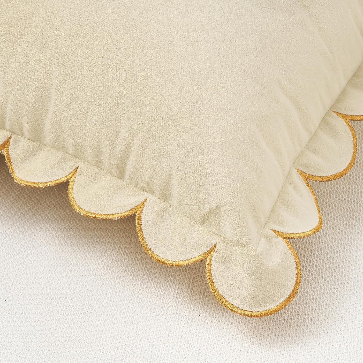 imageMONDAY MOOSE Decorative Throw Pillow Covers Cushion Cases Set of 2 Soft Velvet Scalloped Round Edge Designs Mix and Match for Home Decor Pillow Inserts Not Included Light Green 18x18 inchCream