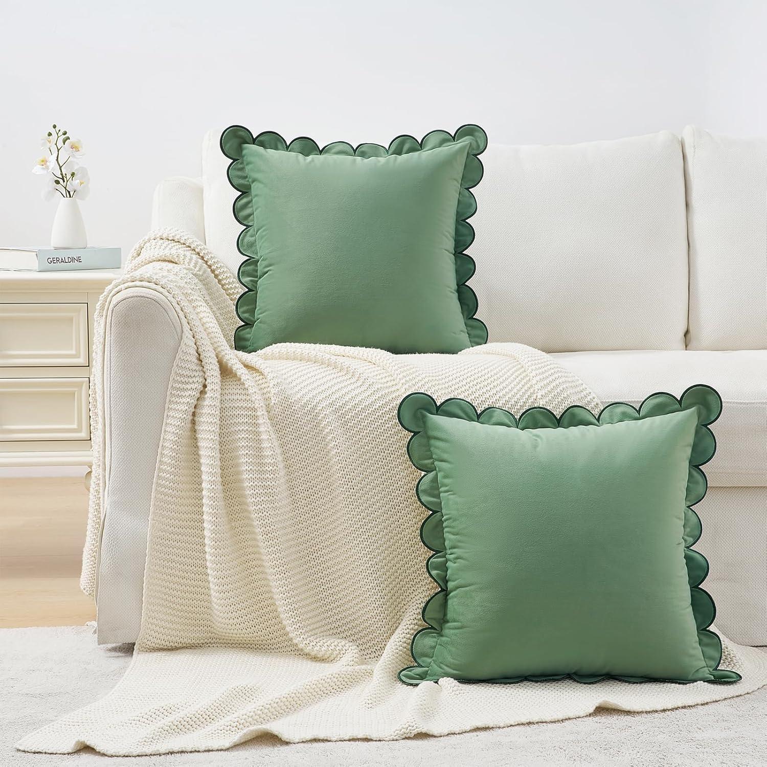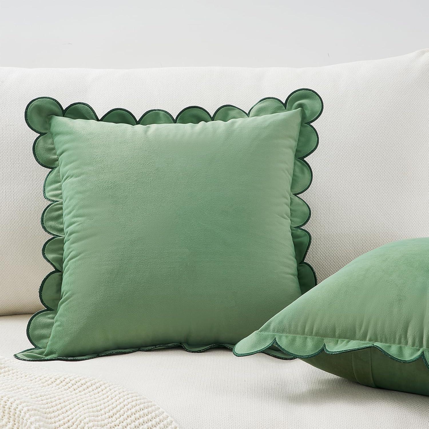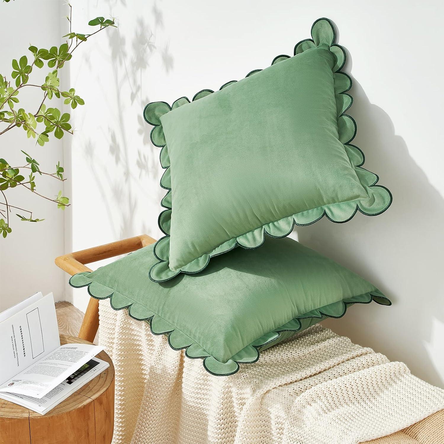MONDAY MOOSE Decorative Throw Pillow Covers Cushion Cases, Set of 2 Soft Velvet Scalloped Round Edge Designs, Mix and Match for Home Decor, Pillow Inserts Not Included (Light Green, 18x18 inch)(Light Green)