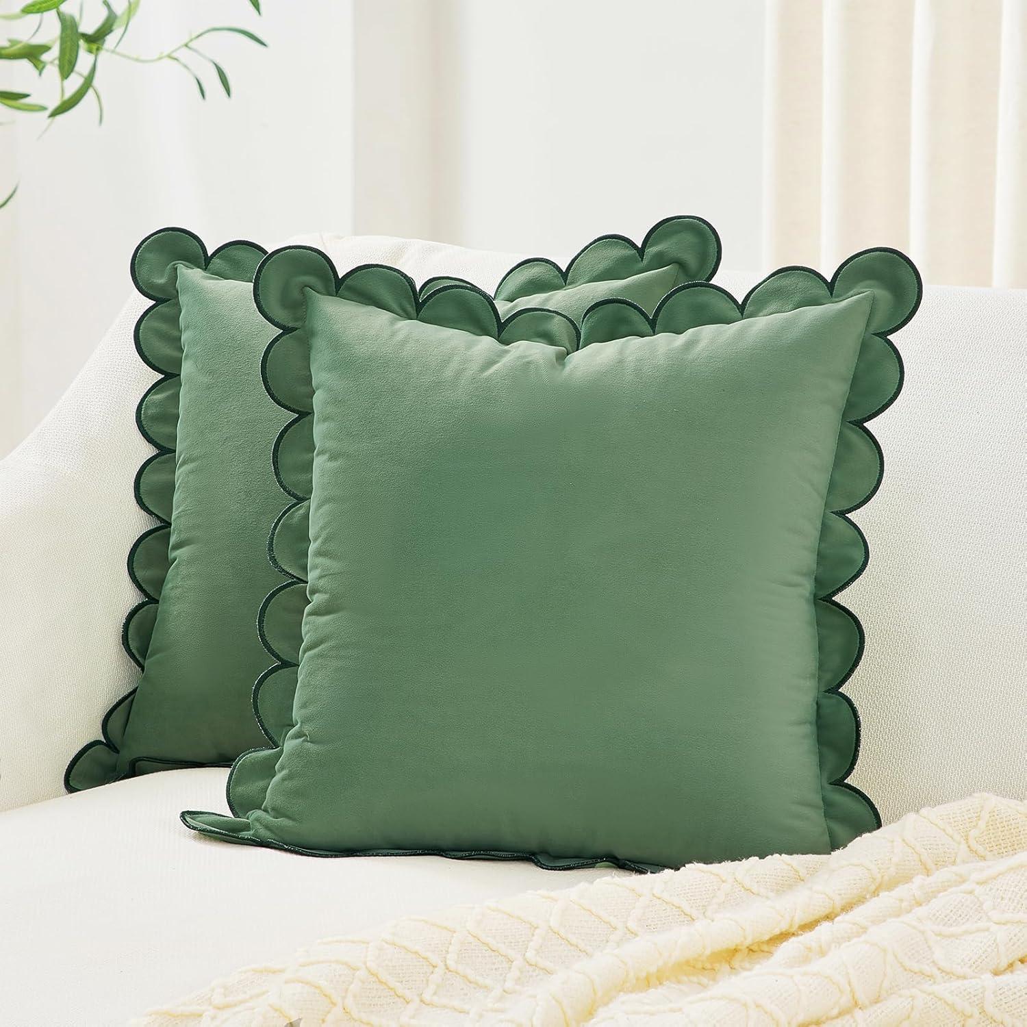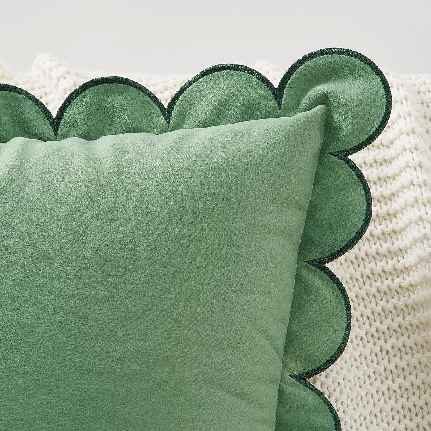 imageMONDAY MOOSE Decorative Throw Pillow Covers Cushion Cases Set of 2 Soft Velvet Scalloped Round Edge Designs Mix and Match for Home Decor Pillow Inserts Not Included Light Green 18x18 inchLight Green