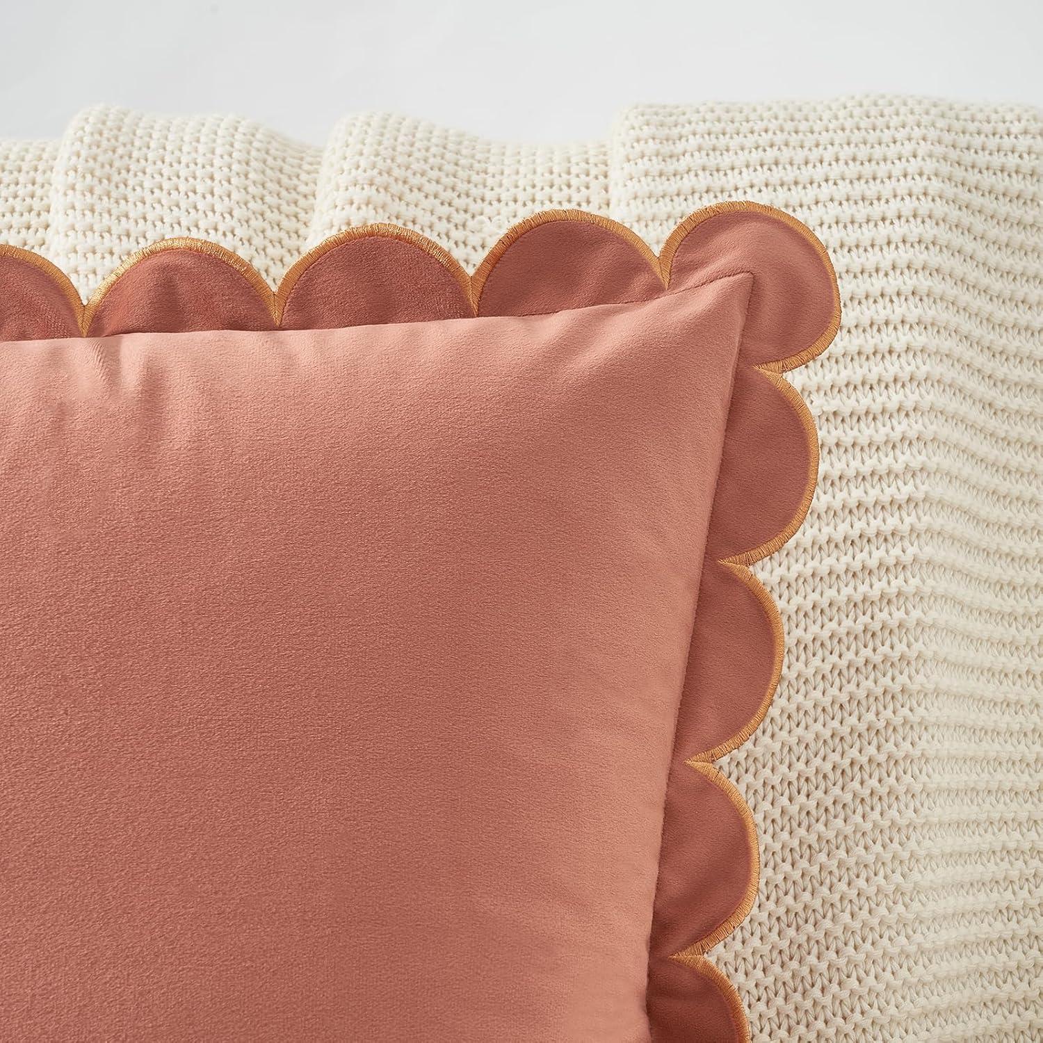 imageMONDAY MOOSE Decorative Throw Pillow Covers Cushion Cases Set of 2 Soft Velvet Scalloped Round Edge Designs Mix and Match for Home Decor Pillow Inserts Not Included Light Green 18x18 inchRustCoral