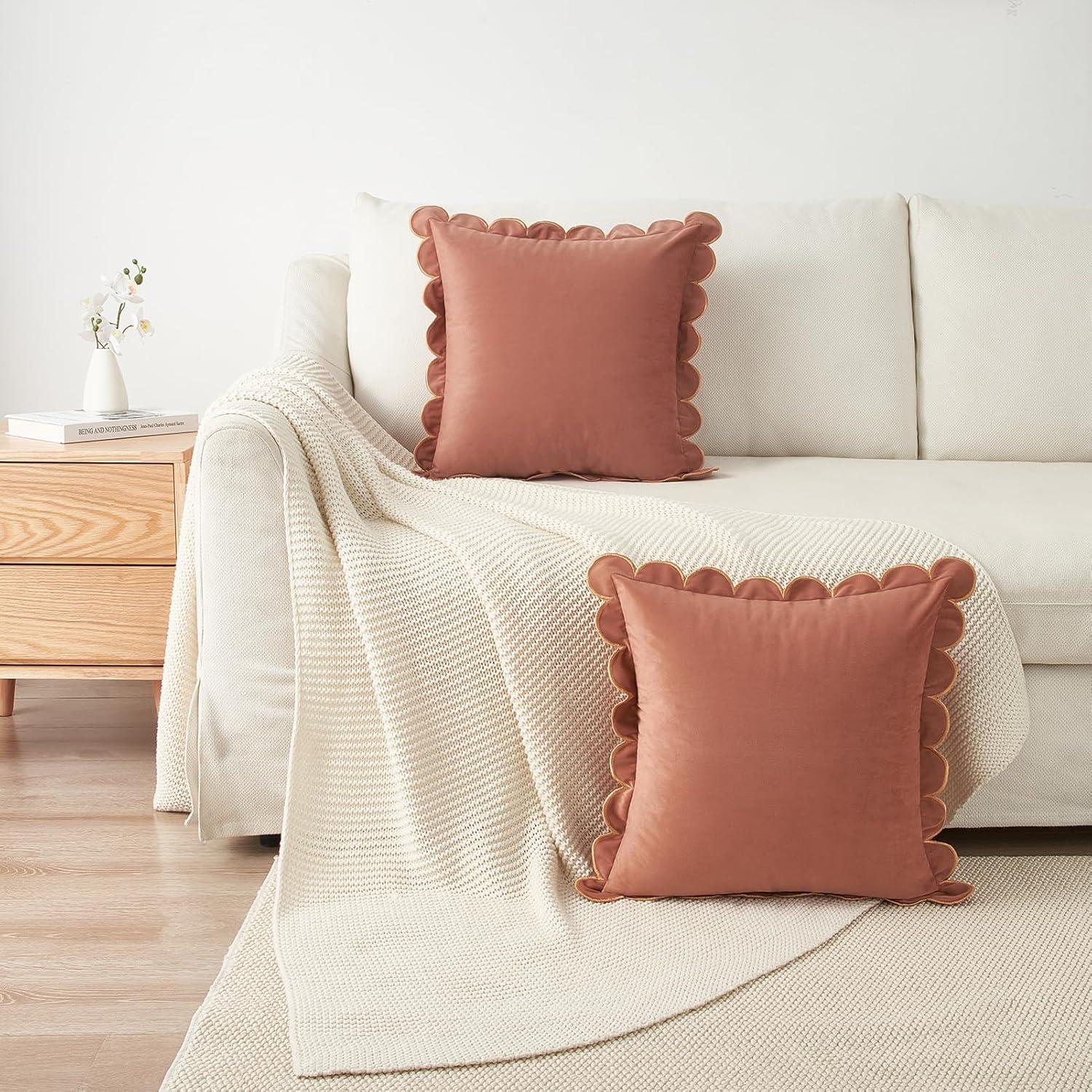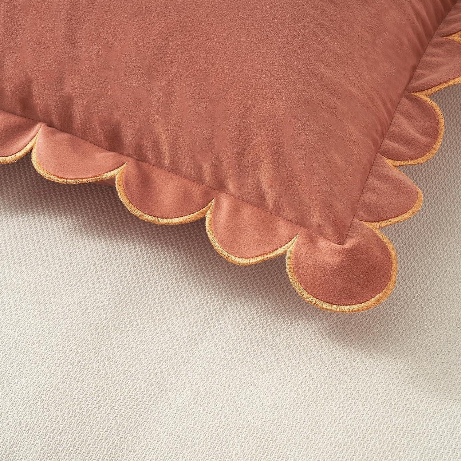 MONDAY MOOSE Decorative Throw Pillow Covers Cushion Cases, Set of 2 Soft Velvet Scalloped Round Edge Designs, Mix and Match for Home Decor, Pillow Inserts Not Included (Light Green, 18×18 inch)(Rust/Coral)