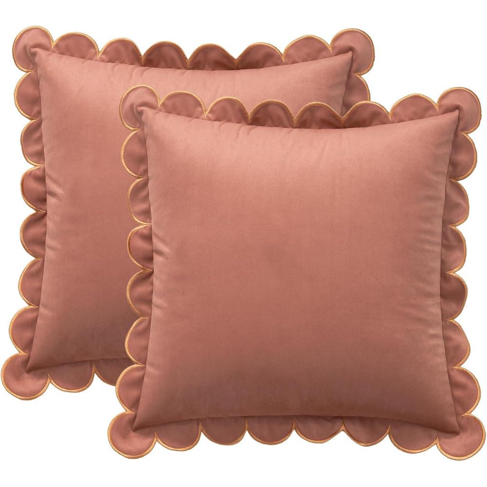 imageMONDAY MOOSE Decorative Throw Pillow Covers Cushion Cases Set of 2 Soft Velvet Scalloped Round Edge Designs Mix and Match for Home Decor Pillow Inserts Not Included Light Green 18x18 inchPinkHoney
