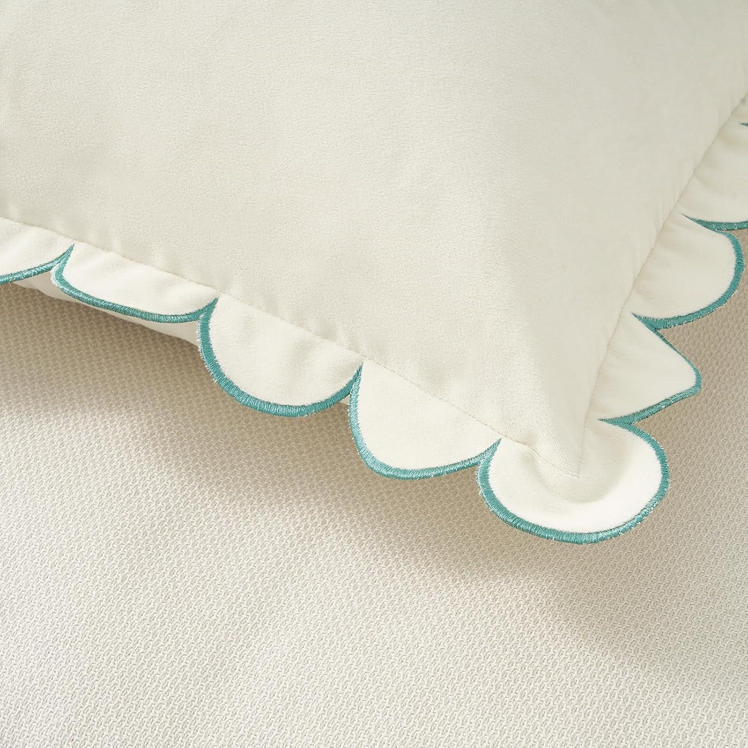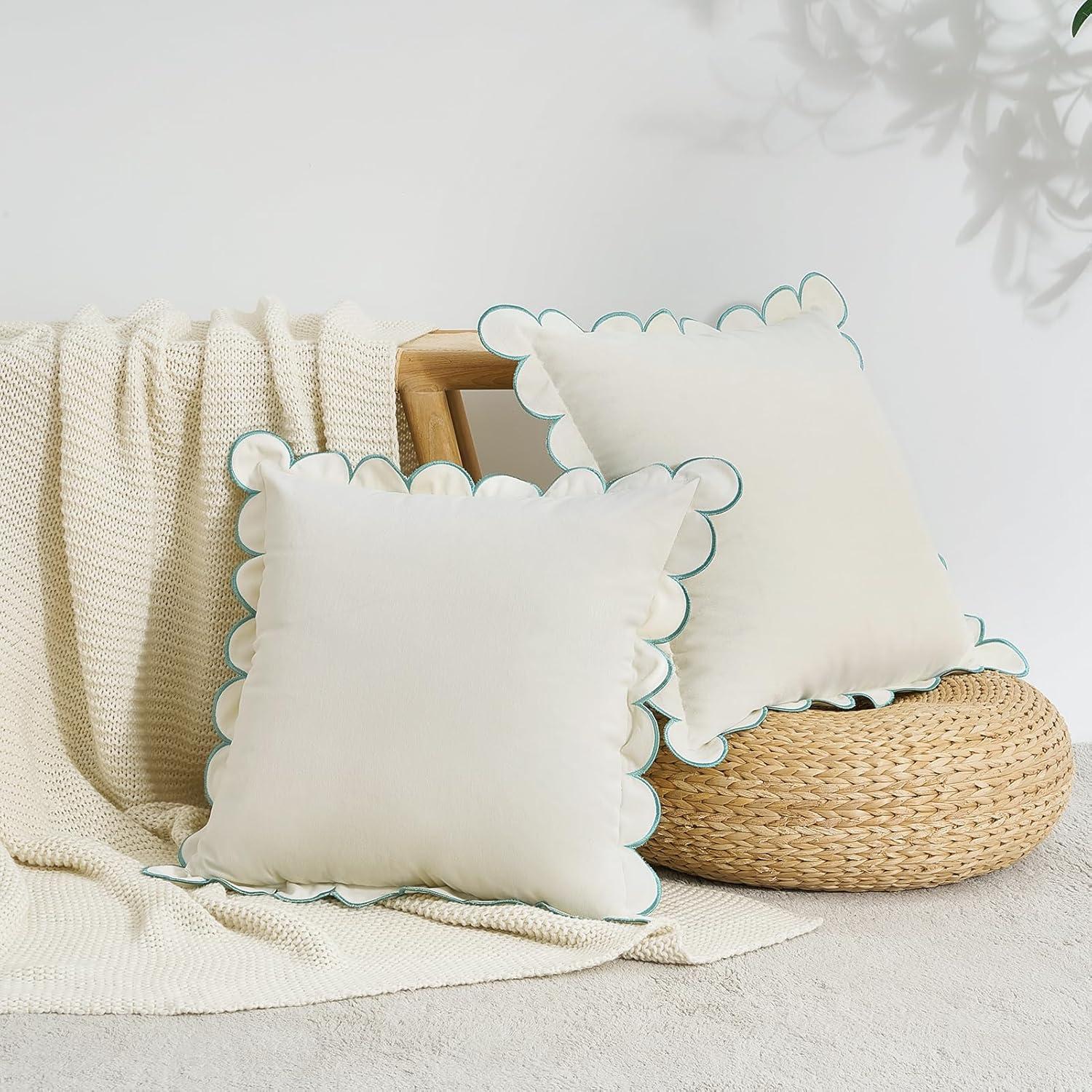 MONDAY MOOSE Decorative Throw Pillow Covers Cushion Cases, Set of 2 Soft Velvet Scalloped Round Edge Designs, Mix and Match for Home Decor, Pillow Inserts Not Included (Light Green, 18x18 inch)(White/Light Blue)
