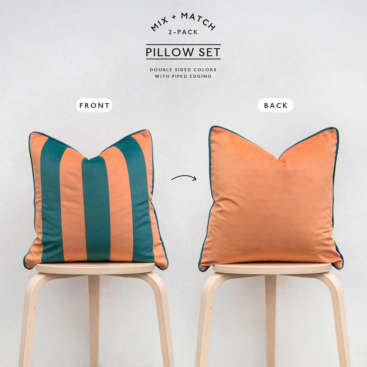 imageMONDAY MOOSE Decorative Throw Pillow Covers Cushion Cases Set of 2 Soft Velvet Striped Piping Edge Designs Pillow Inserts Not Included BlueLight Blue 18x18 inchCoralDark Teal
