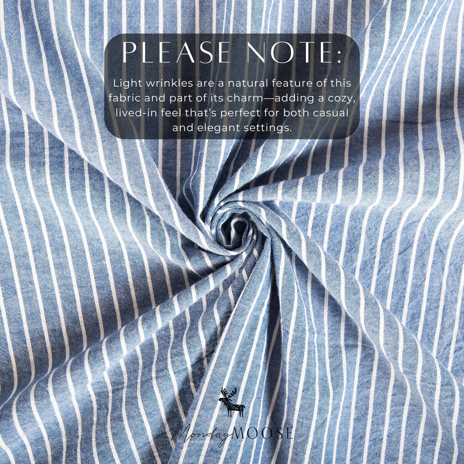 MONDAY MOOSE Gingham Checkered Farmhouse Rustic Ruffle Style Decoration Round Natural Stonewashed Cotton Tablecloth for Kitchen, Dining Room, Restaurant (60″ Round, Beige)(Blue/White Stripes)