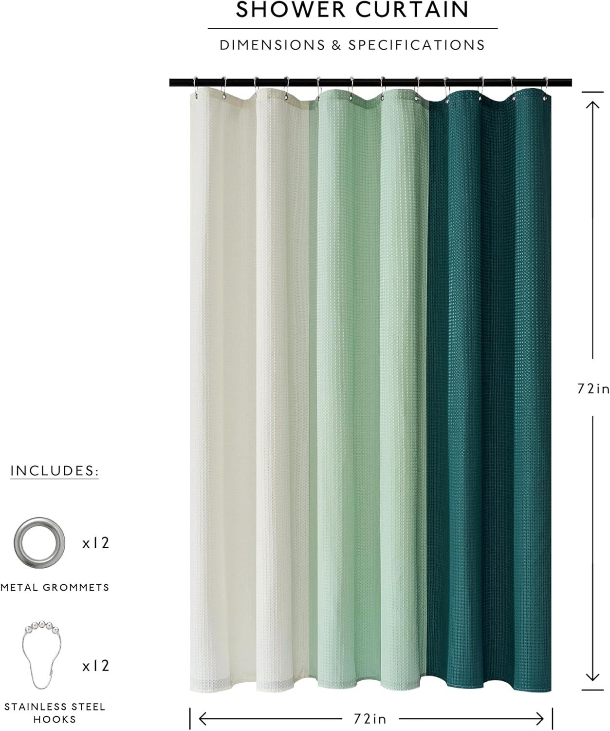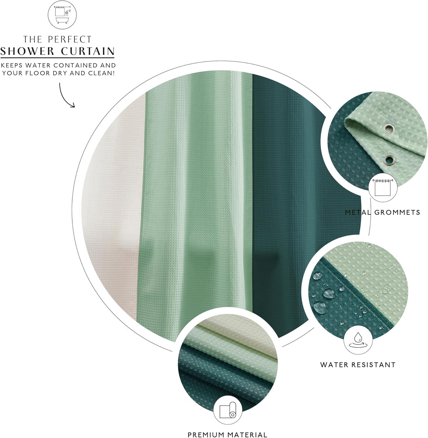 PREMIUM QUALITY: Beautiful honeycomb waffle weave pattern featuring 12 rust resistant buttonholes for easy hanging and long-lasting use. Thick and heavy polyester fabric (230GSM) keeps it in place while showering