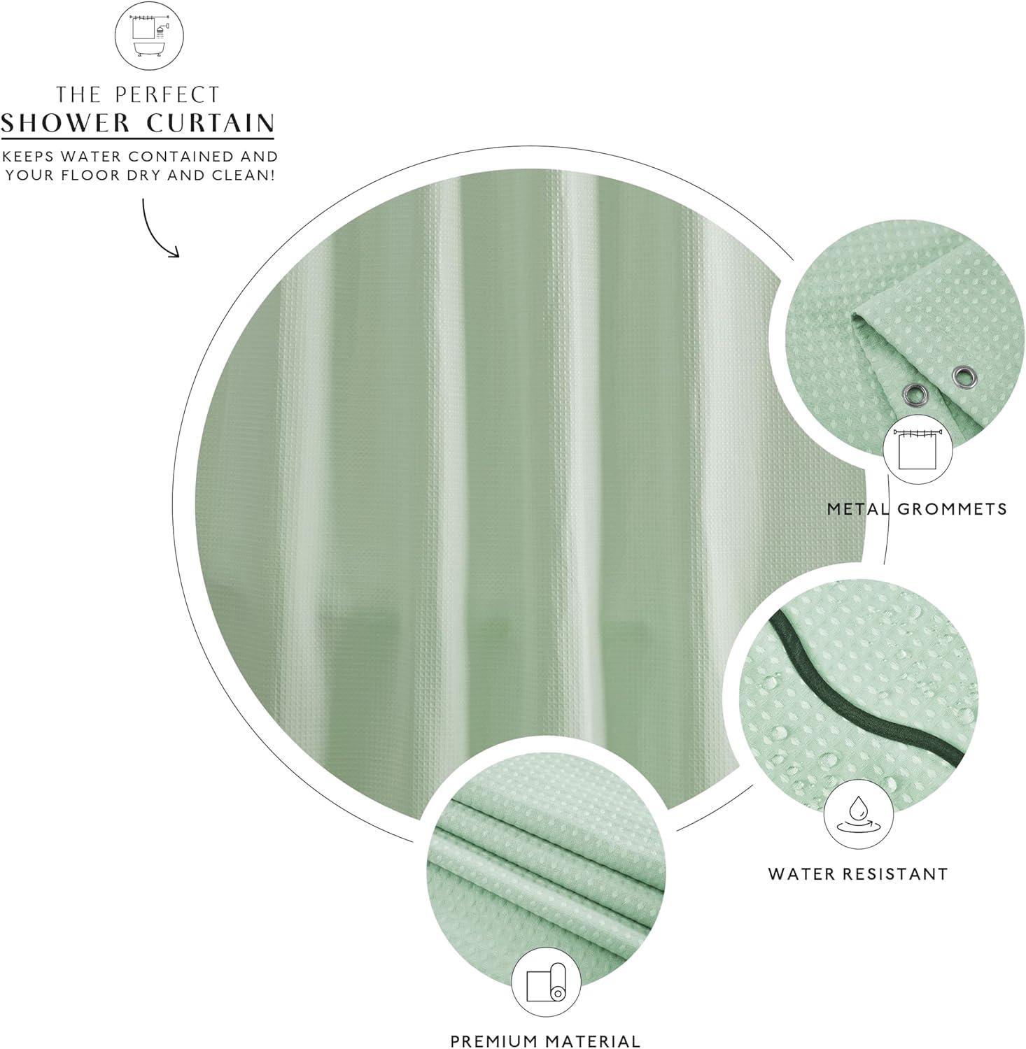 PREMIUM QUALITY: Beautiful honeycomb waffle weave pattern featuring 12 rust resistant buttonholes for easy hanging and long-lasting use. Thick and heavy polyester fabric (230GSM) keeps it in place while showering